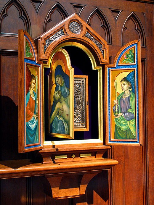 We specialize in, but are not limited to, the completion of many different original religious art forms, such as liturgical paintings, both murals and small-scale works, traditional byzantine iconography, church appointments and furnishings, altars, tabernacles, baptismal fonts, distinctive donor memorials, columbarium design and fabrication, stained glass, sculpture, gold leaf decoration, copper enamels and so much more. We design and produce all of this work in our Braddock, Pennsylvania studio. Over the years, we have developed an extensive knowledge of traditional church design. That, in combination with our artistry, enables us to sensitively reflect your worship style and devotional requirements. We have worked with churches throughout the United States and Canada. With regular and extensive communication, we are able to produce uniquely beautiful work that is designed specifically for its intended setting. For large renovations and construction projects, we have organized a team of experienced craftsmen and professionals capable of translating our designs to realize the finest outcome for you, our client.